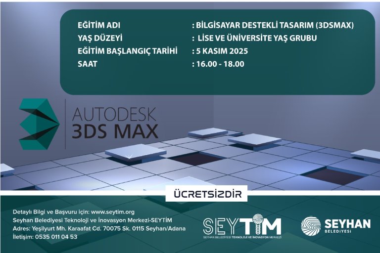 3ds Max Eğitimi; mimarlık, endüstriyel tasarım ve mühendislik gibi tasarımla ilgili birçok alanda kullanılan bir benzetim programıdır. Bu eğitim programı ile kişiler 3dsMax programının kullanım alanlarını ve bu program ile proje üretmeyi öğrenmektedir.